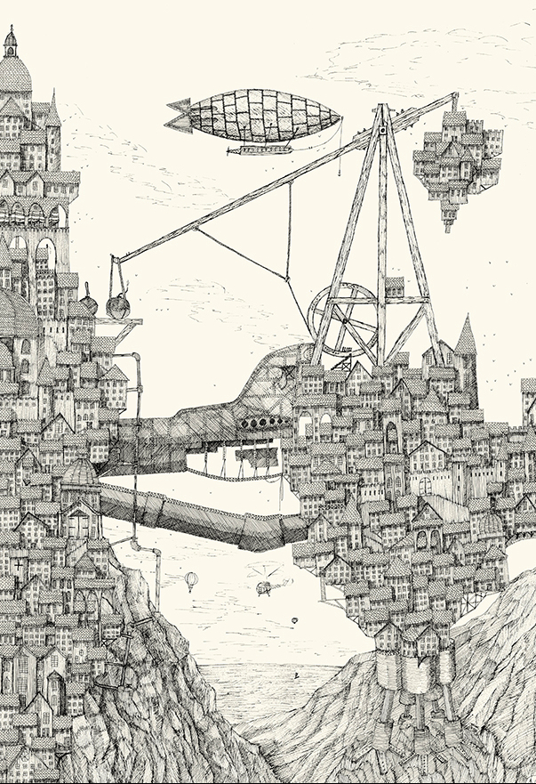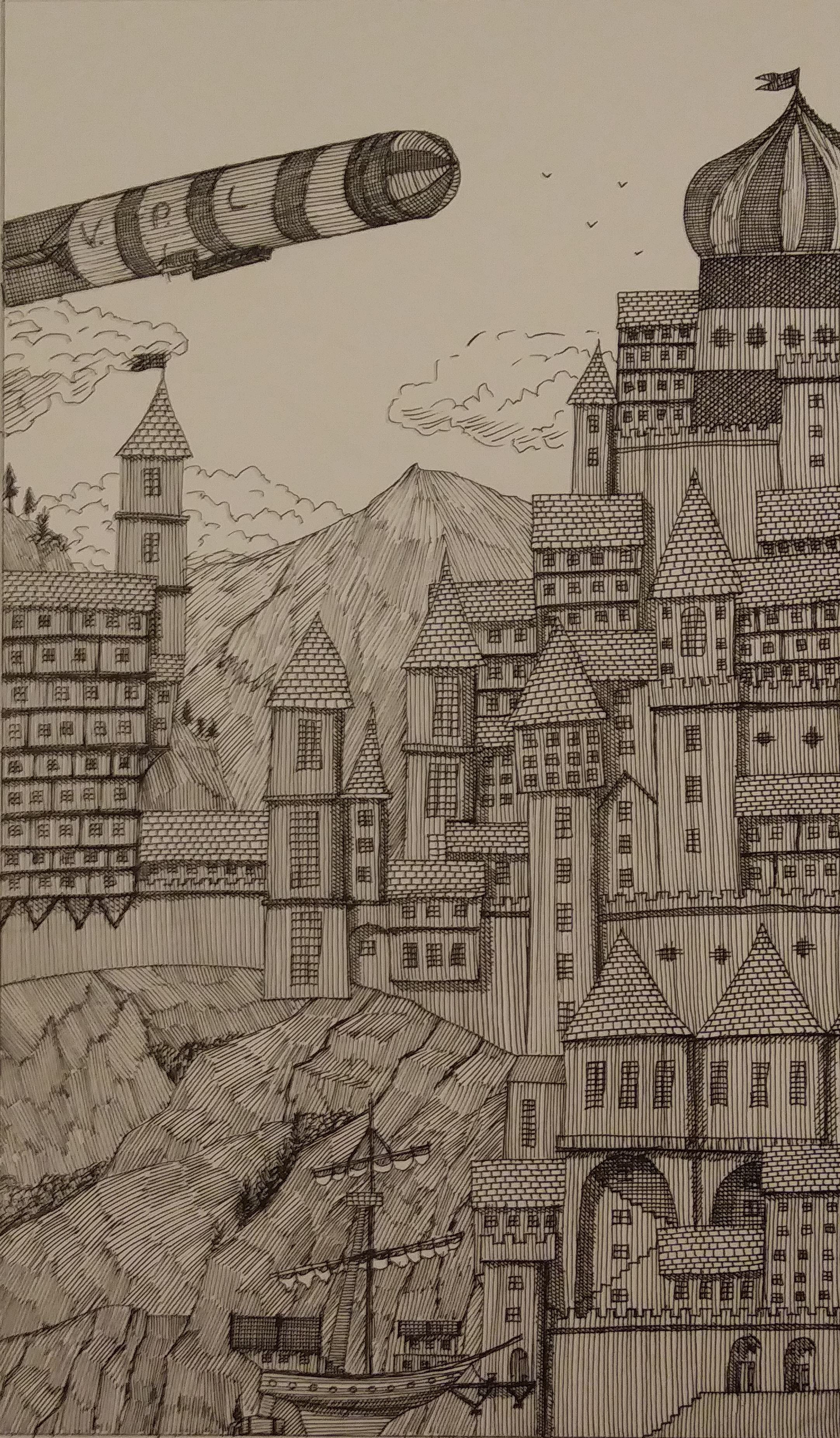 “Come fly with Etimret Airways”“Sir, here we have the contrast in size between A Mighty Ship and the smaller, older pattern, Sky Yacht type of craft….” Mighty Air Ships waiting for their travel ordersFierce attack from Heretical Craft on a mighty Ship at night by searchlight…. “And here, we see both a rare view of a Heretical Rotary Craft, and a controversial Armoured Balloon… not to mention a full size offensive Battle Trebuchet in the late Village Pattern….”