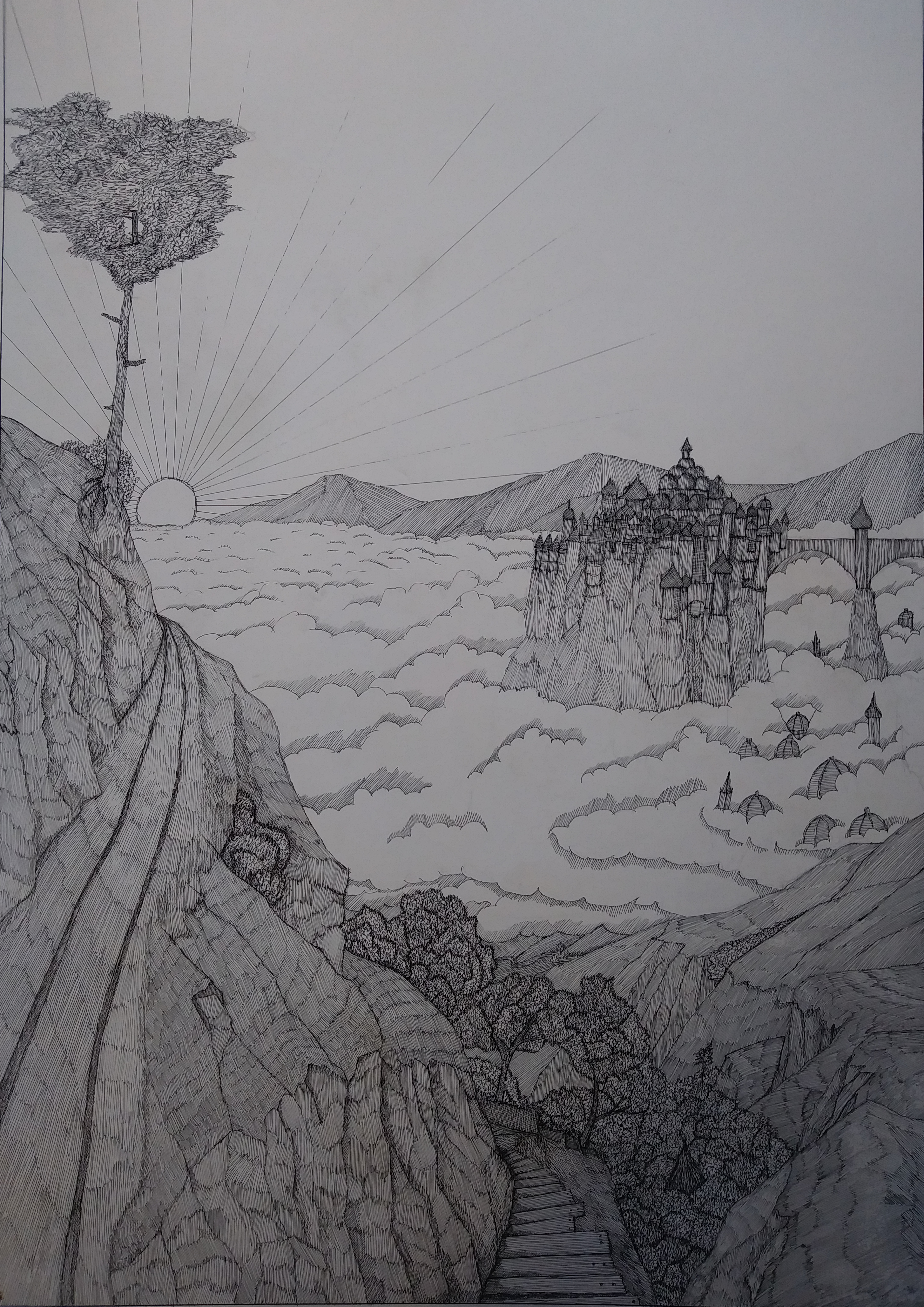 “The view back at the Fortified Palace of Thurgil, what you can’t see here though is the front lines of battle in the valley below the clouds. That day, the glorious 54th Toshcant Dragoons fell to the heavy guns of the Toumon artillery in an action described as “daring, but foolish…” And we got sunburned up a mountain…”