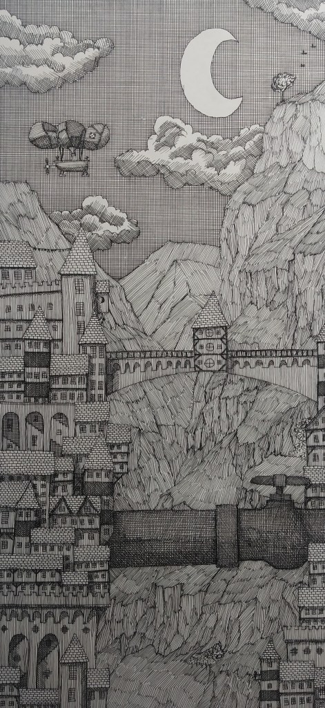 “The Moon was bright as I, as newly the owner and captain of the SS Jazz Mag escaped from the Hanging Pleasure Gardens of Greater Maggie… off into a night of worry and disquiet in my feelings. In particular the bandit that sold me this damned tub of a craft. What was I thinking handing over gold for this. (At this point) Least of all craft. So slow at this point that the stiff breeze was almost working for the Abbess of Pleasure and driving my escape backwards… Sirens M’Boy. Never get on the wrong side of an Abbess of a Pleasure Garden…”